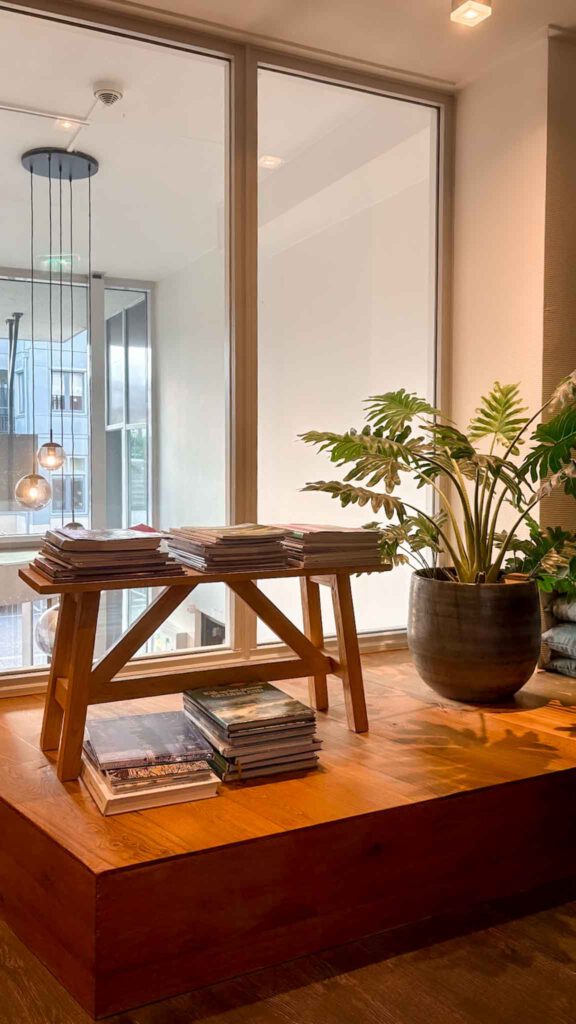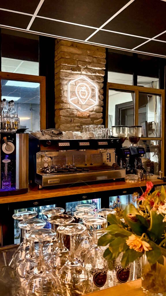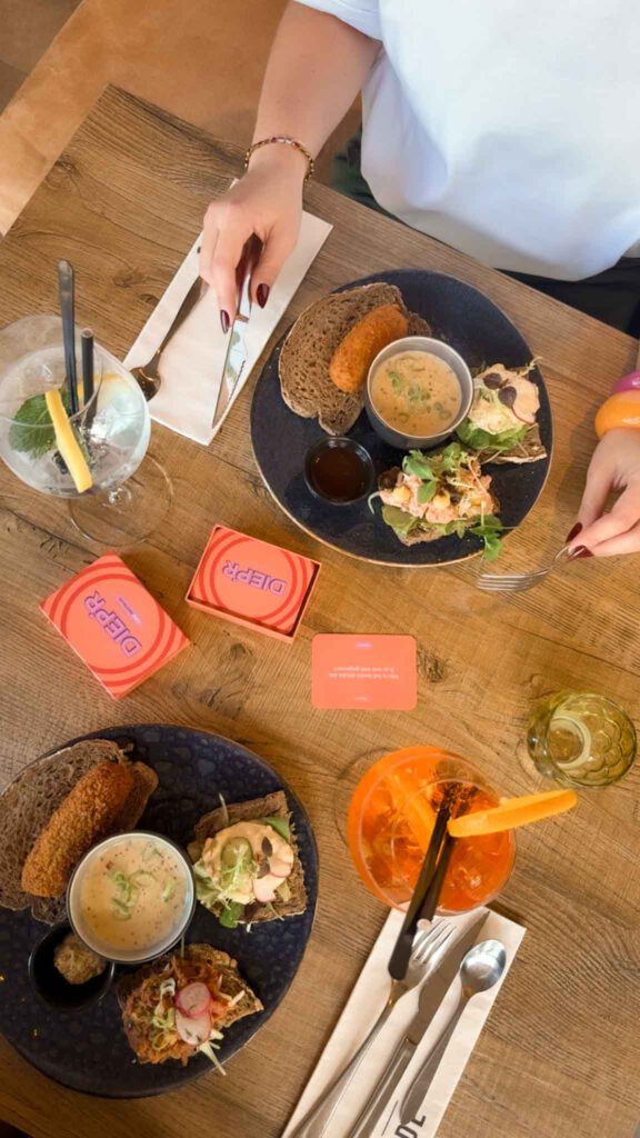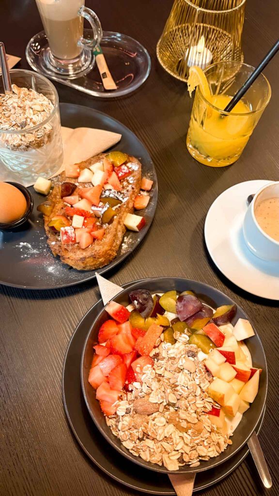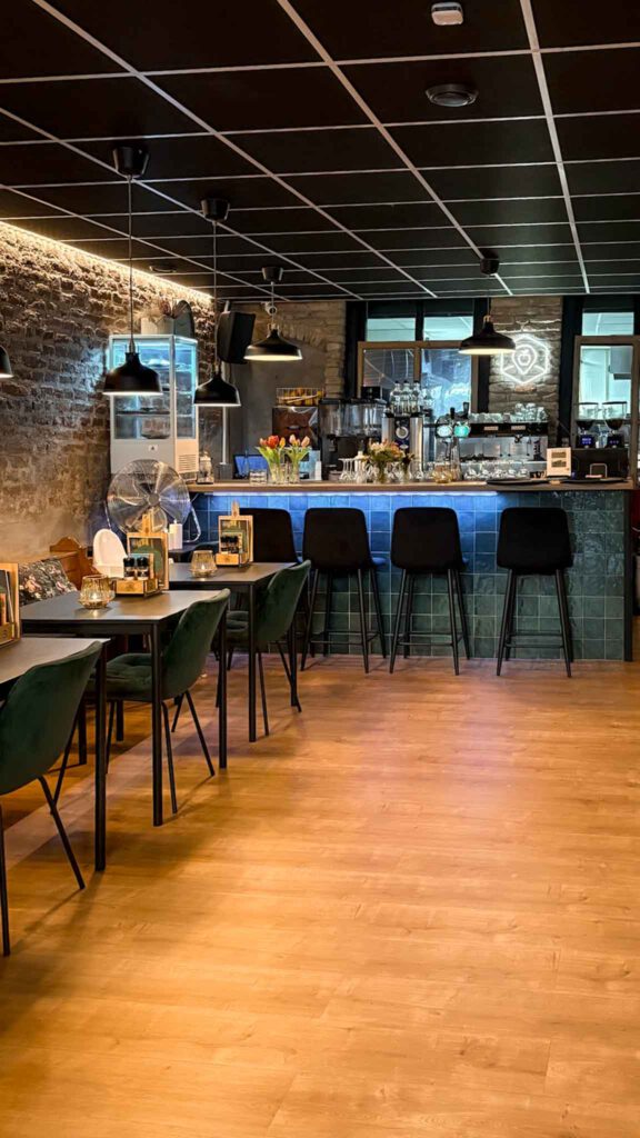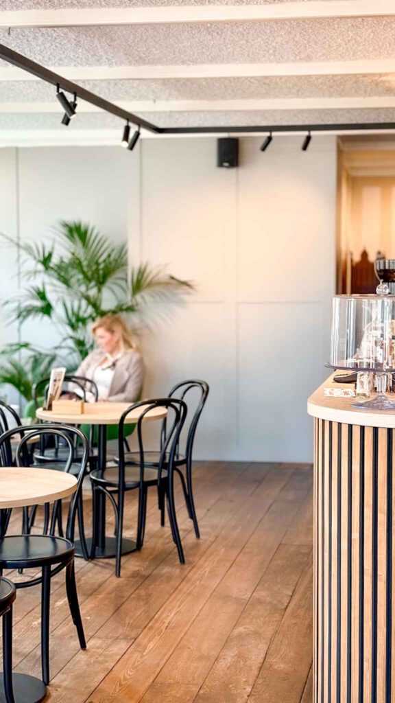 Wanneer je achter in het winkeltje de deur door gaat, kom je in een knus en gezellig restaurant. Hier genoten wij van een cappuccino, verse jus, overheerlijke wentelteefjes en een verse hangop met seizoensfruit en muesli. Genieten. Meer woorden zijn eigenlijk niet nodig om deze hotspot te omschrijven.
