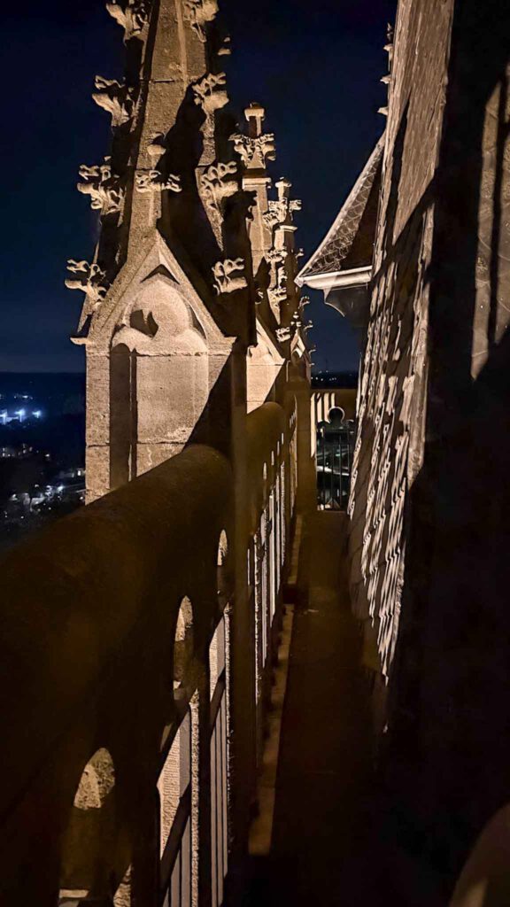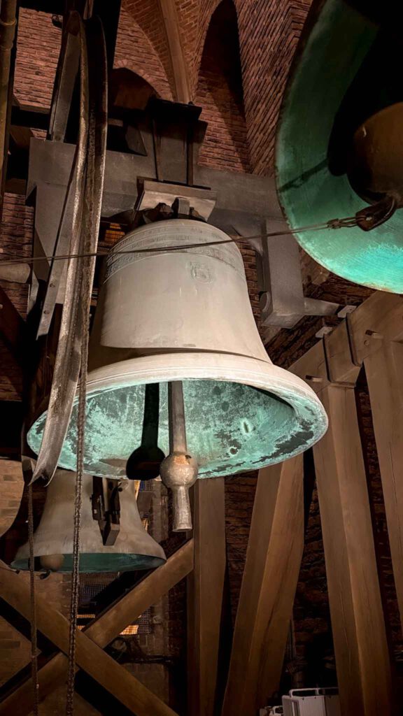 En toen was het tijd om de mouwen op te stropen en de toren van de Martinikerk te gaan beklimmen! Met een hoogte van 94 meter en 220 treden is het het hoogste gebouw van Gelderland en Hanzestad Doesburg. Gelukkig heb je, voordat je mag gaan genieten van een prachtig uitzicht, 2 tussenstops in de toren zelf. Hier krijg je een korte film te zien over hoe het carillon (het klokkenspel in de kerktoren) vroeger werd bespeeld en breng je een bezoekje aan het carillon zelf. Wij hadden het geluk dat het precies 21:00 uur was en we een mooie klokken serenade mochten ervaren! Uiteindelijk eindigden we in de toren van de kerk en liepen we een rondje buiten over de balustrade. Hallo klokkenluider van de Notre Dame vibes!