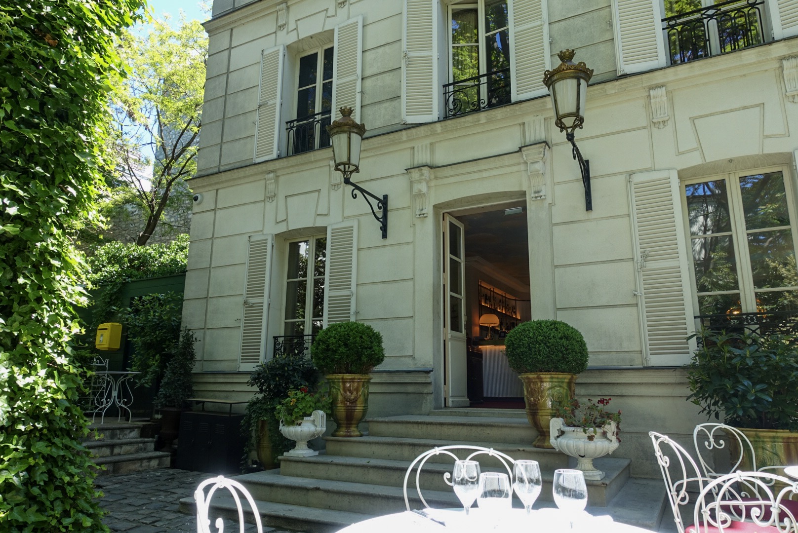 Hôtel Particulier Montmartre is wat mij betreft de meest insta-waardige spot die ik in Parijs heb gevonden. Wat een prachtige plek! Ik ben verliefd geworden op de grote tuin met de mooie gedekte tafels, het kleine maar statige hotel zelf en de groene bomen. Binnen vind je een romantisch interieur, met chique en tropische accenten. Ik wilde van elke hoekje een foto maken(zelfs van het toilet). Over dit hotel(en hoe je er moet komen) heb ik al wat meer geschreven in mijn andere blog over Parijs.